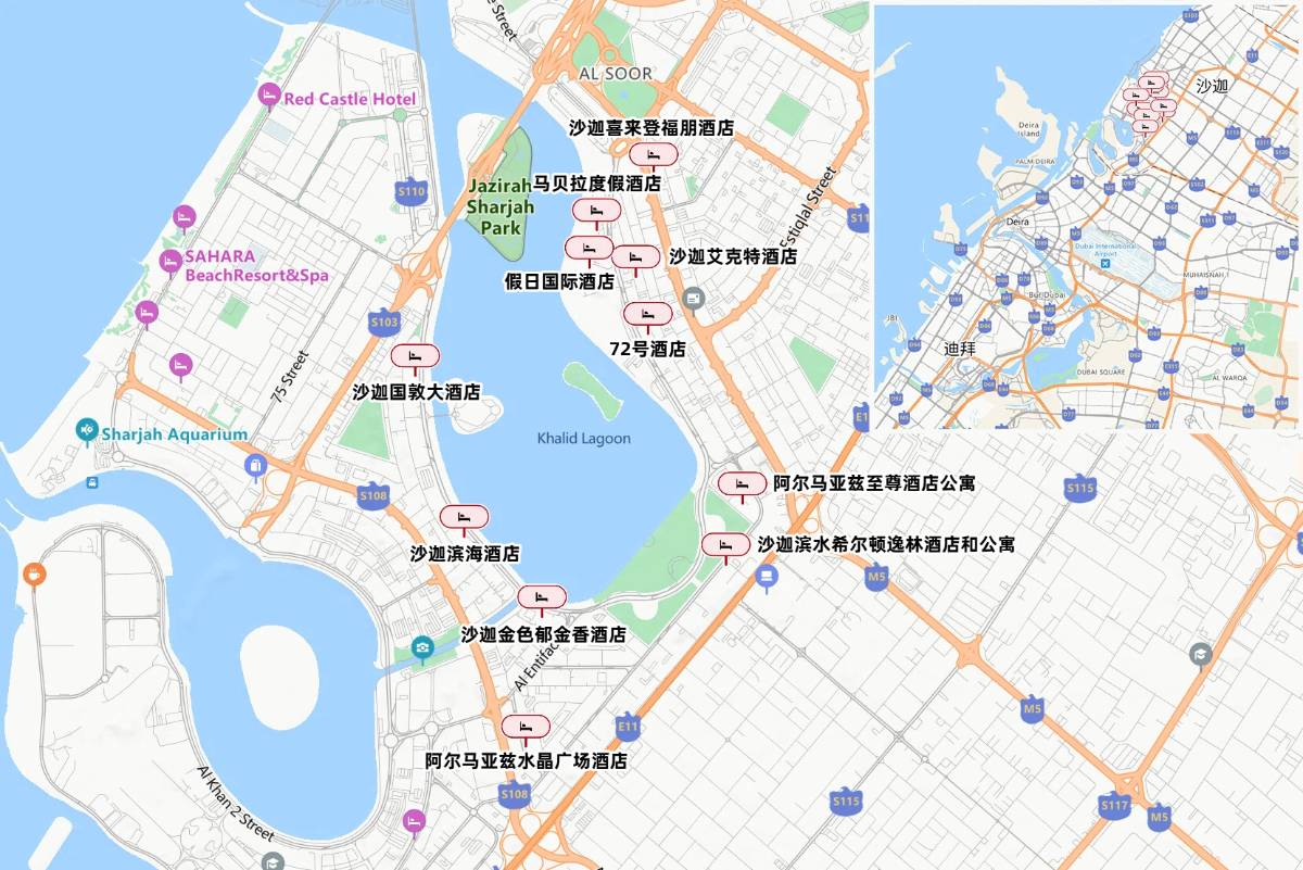 沙迦哈立德潟湖商圈的酒店,将“景观”“便利”“格调”三重优势集于一身,各有千秋,你pick哪一家?