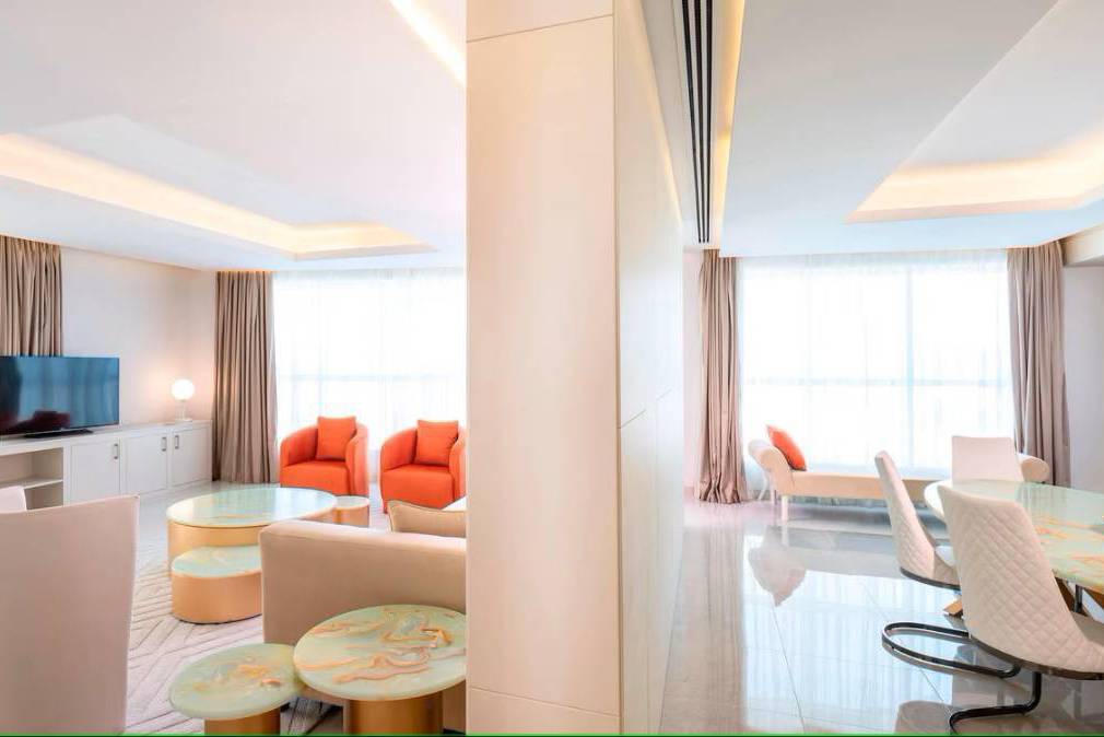 沙迦滨海酒店的前身为挂牌国际五星的希尔顿酒店,翻新后延续卓越品质与口碑。262间典雅客房和套房中,家庭湖景房巧妙连通豪华客房与套房连通,兼顾家庭欢聚与个人隐私;顶楼行政套房面积达117平方米,尊享俱乐部休息室,尤其方便商务社交。