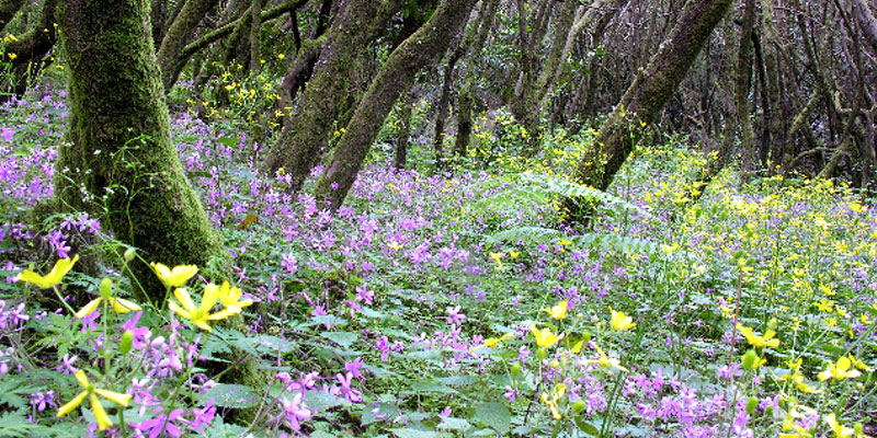 加拉霍艾国家公园森林密布,云雾缭绕,植被丰富多样,生长茂盛。森林笼罩于浓雾间,空气湿度大,有利于植被在这片荒芜的岛屿上生长。这里的森林为照叶林或常绿林,植被为月桂属树木。这里终年湿度大,温度适宜,森林茂密繁盛。