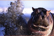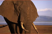 和茂密的森林相映成趣的是,绿色的泛滥平原和东面广阔的景象,穿过碱性湖,到从马赛(Maasai)草原上升起的蓝色火山崎岖的山顶。大水牛、羚羊、成群的斑马和长颈鹿都聚集在绿色的平原里,其中有些毛色很深,远看去象是黑色的一样。