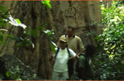 一进入大门,道路蜿蜒经过茂密的地下水森林,上百只狒狒目中无人地在路边闲逛,蓝猴灵活地在桃花心木之间跳跃,羚羊小心翼翼地走过树荫,个头超大的犀鸟在树顶端高声鸣叫。
